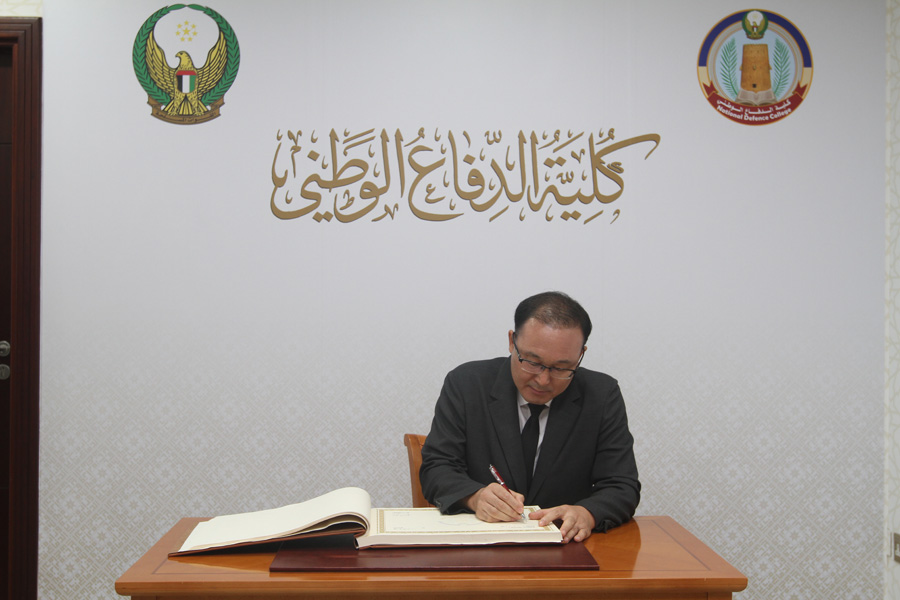 On Tuesday, September 16, 2025, the National Defence College welcomed a visiting delegation from the National Defense University of the Republic of Korea. The delegation was received by Brigadier Pilot Saif Al-Yamahi, along with the advisors to the Commandant of the National Defence College.